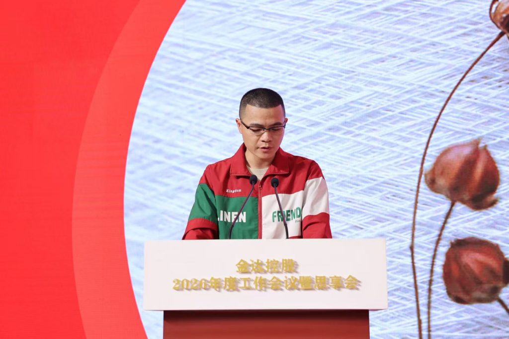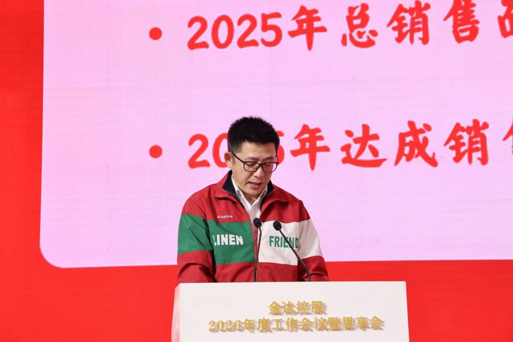 金达控股董事局主席任维明出席会议并发表重要讲话,总结过往发展成效,部署 2026 年战略任务。他指出,2025 年面对全球亚麻行业多重挑战,公司坚守既定发展战略,巩固全球行业领先地位,在市场拓展、数字化转型、ESG 体系建设及人才队伍优化等领域取得阶段性成果。2026 年,公司将以全球化发展为核心,以数字化转型与人才培养为支撑,聚焦四大战略方向推进工作:一是品牌文化焕新,深化高端品牌布局,推动业务模式向价值竞争转型,融入 ESG 理念,强化品牌文化建设与行业影响力;二是精细管理提质,升级核心生产工艺,推行全流程标准化管理,深化供应链合作,推进降本增效;三是人才梯队建设,优化人才结构,完善培育与激励体系,强化核心岗位建设,激活组织动力;四是数字转型赋能,搭建集团智能化管理平台,深化业务系统应用与数据集成,打通信息壁垒,构建数据安全防护体系,以数字化提升管理效能。